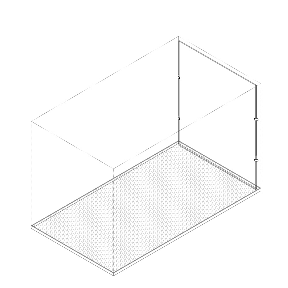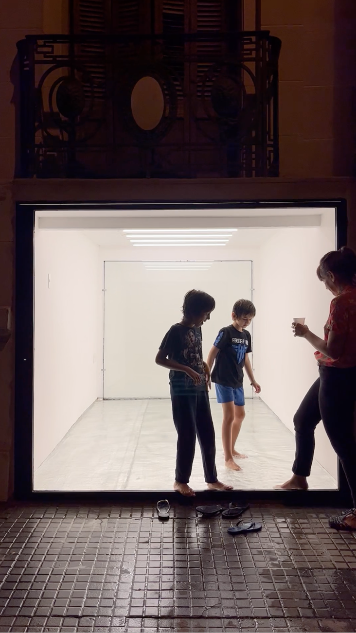 “Walking over Water” proposes two radical transformations to the space of 8 ½. The entire floor is covered with an impermeable asphalt membrane capable of containing a thin layer of water. The glass enclosing the space is dismantled and leaned against the back wall. This alteration allows for a slightly flooded interior to temporarily coexist as an extension of the public space. This transformation enables access to a space that has always been viewed from the outside, with the condition of walking on water. The proposal tests and challenges the resilience of 8 ½ in its civic coexistence.