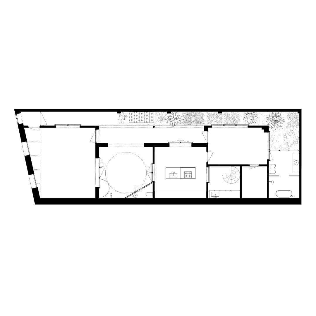 The Chorizo House is one of the Buenos Aires’s most common typologies. Mostly developed at the beginning of the 20th century they are defined by an exterior corridor that distributed a series of separate rooms in enfilade. Each of the rooms houses a specific function and organized the lives of the immigrants that arrived by masses during the 1900s. When we were asked to destroy and old Casa Chorizo to build a new house, we proposed to keep the house structure and make architecture by subtracting material, not driven by a nostalgic desire of preservation but with the positivist intention to transcend its spatial qualities.